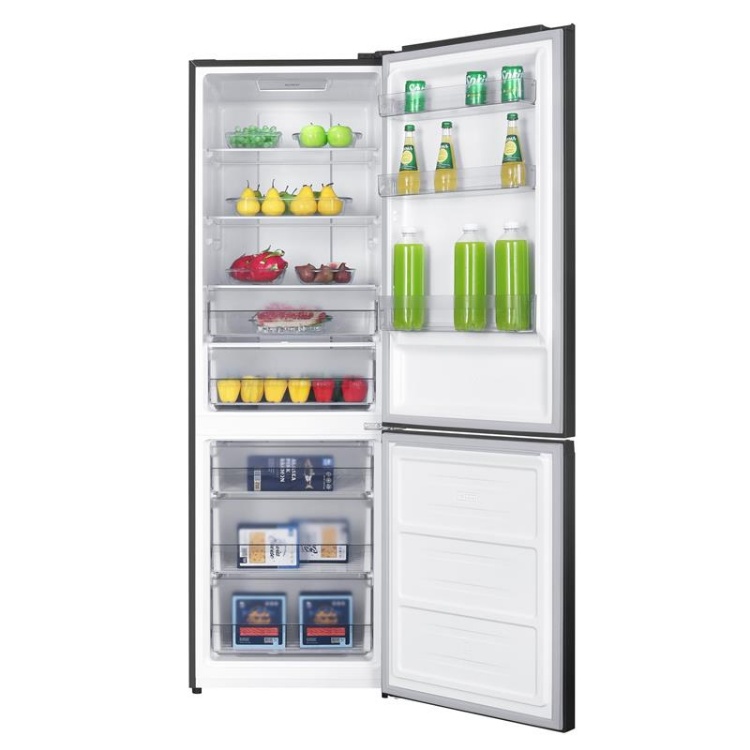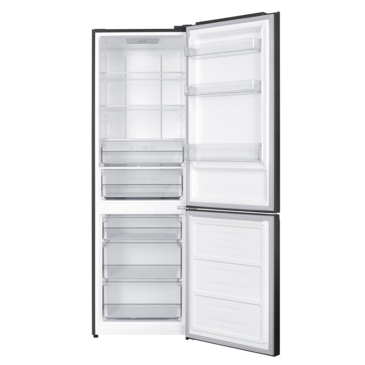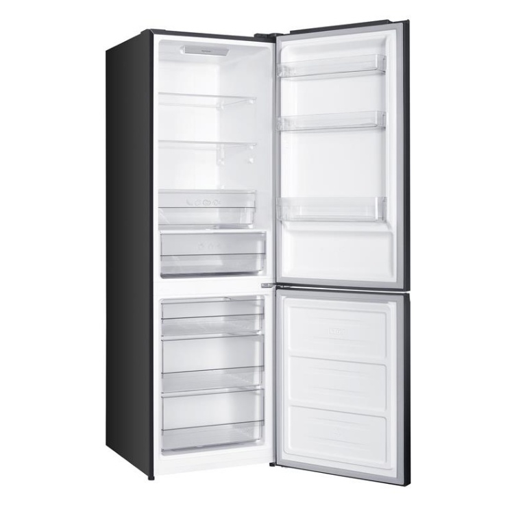 Grifon NFND-186/402DX — двухкамерный холодильник с нижней морозильной камерой, который подходит для средних и больших кухонь с необходимостью хранить много продуктов. Модель имеет общий полезный объем около 400 л – это дает достаточно места для больших пакетов и сезонных запасов. Система No Frost работает и в холодильной, и в морозильной камере, поэтому нет необходимости вручную размораживать отделения, что значительно повышает удобство в повседневном использовании.