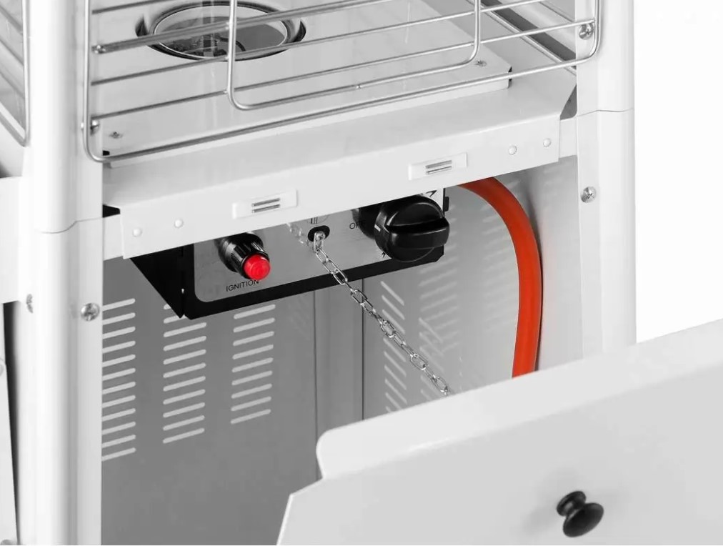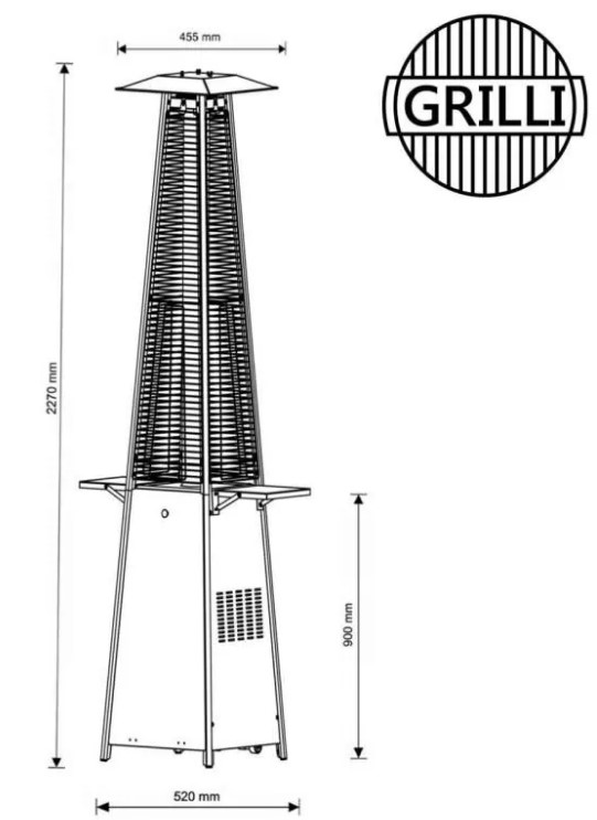 В холодное время года досуг на открытом воздухе становится некомфортным. Решить это неудобство позволит газовый обогреватель Pyramide ТМ GRILLI. Исполнение в классическом дизайне с использованием качественных материалов делает это обогреватель идеальным для обогрева. Горящее пламя в колбе создает прекрасный визуальный эффект, а также обогревает окружающее пространство. Для более качественного отражения и рассеивания тепла используется крышка-отражатель из нержавеющей стали. Таким образом, Pyramide ТМ GRILLI способна эффективно обогреть пространство. Стеклянная колба имеет защиту в виде металлической решетки, которая является препятствием для механических повреждений, а также непреднамеренным ожогам. Максимальная мощность отопителя 13 кВт. А время непрерывной работы отопителя, от одной заправки двадцати семилитрового баллона, составит около 12-40 часов, в зависимости от выбранного режима нагрева. Нижняя часть обогревателя, это легко открывающаяся тумба, где устанавливается баллон с газом. Наличие 4х ножек гарантирует стойкость, при которой его сложно перевернуть. Газовый обогреватель Pyramide ТМ GRILLI – это отличный способ обогрева прохладными летними вечерами, а также зимой при минусовой температуре. Также, визуальный эффект и стойкость излучаемого тепла, по достоинству оценят и посетители кафе, ресторанов, уличных площадок.... Конструкция продумана до мелочей и гарантирует простоту эксплуатации устройства!