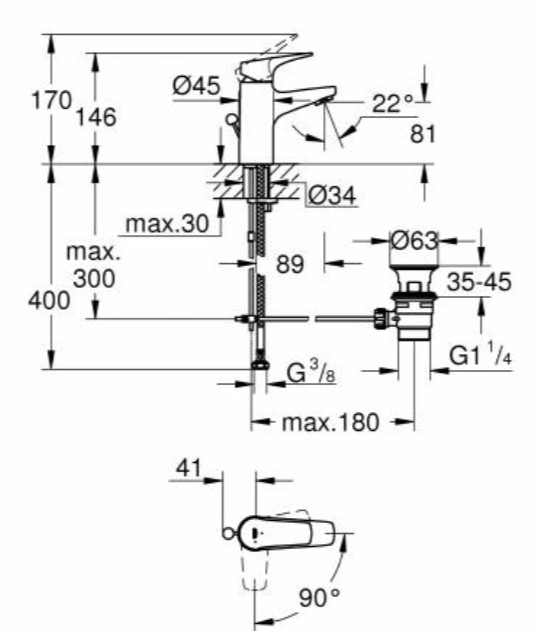 | Отверстие для смесителя, (мм) | 35 |