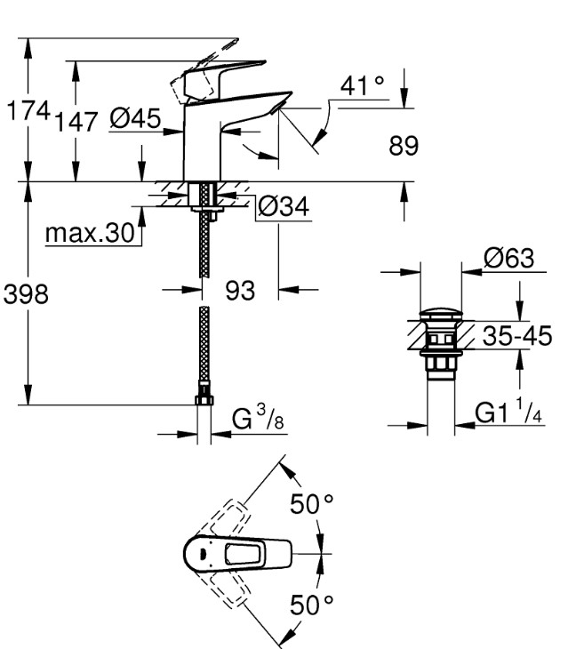 С помощью рычага управления, обладающего механизмом плавного хода GROHE LongLife, можно с лёгкостью отрегулировать желаемый напор воды и ее температуру. А специальное строение аэратора с водосберегающей технологией GROHE WaterSaving способствует рациональному потреблению водных ресурсов, значительно экономя их расход - до 50процентов.