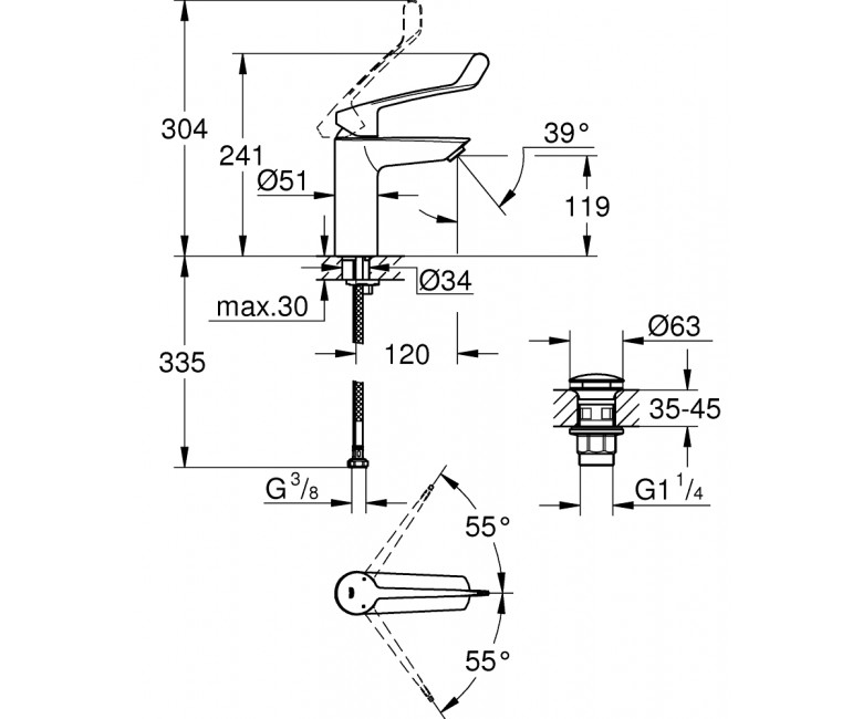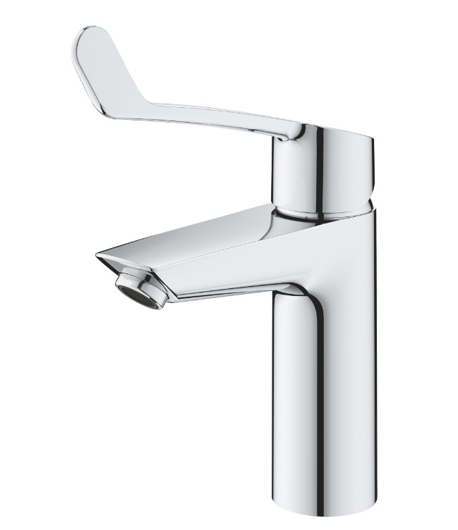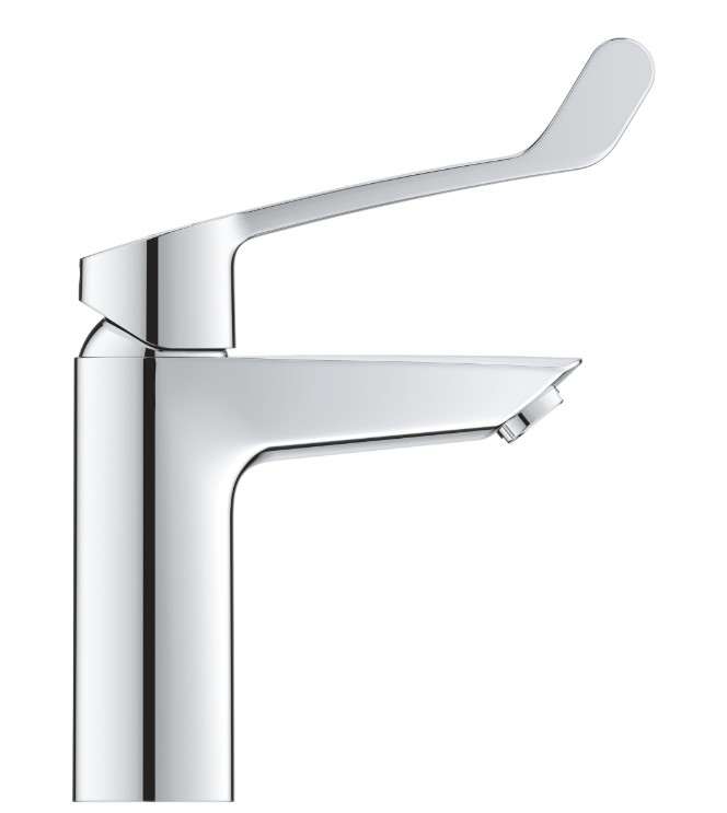 Однорычажный смеситель для раковины GROHE Eurosmart New — это специально разработанная модель с увеличенным рычагом управления, предназначенная для установки в медицинских учреждениях с целью обеспечения максимального удобства и комфорта пользования для медперсонала, посетителей, больных и людей с инвалидностью конечностей во время проведения ими водно-гигиенических процедур.