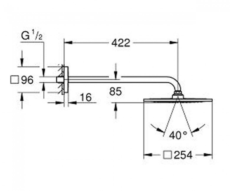 | Диаметр верхнего душа, (см) | 25.4 х 25.4 |