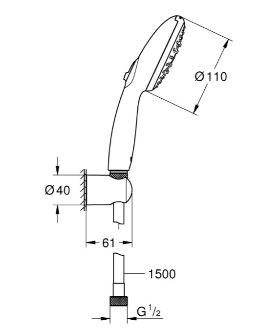 | Комплектация | ручной душ, настенный держатель |