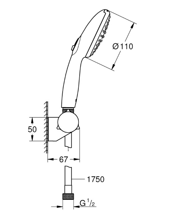 | Комплектация | ручной душ, душевой шланг, настенный держатель |