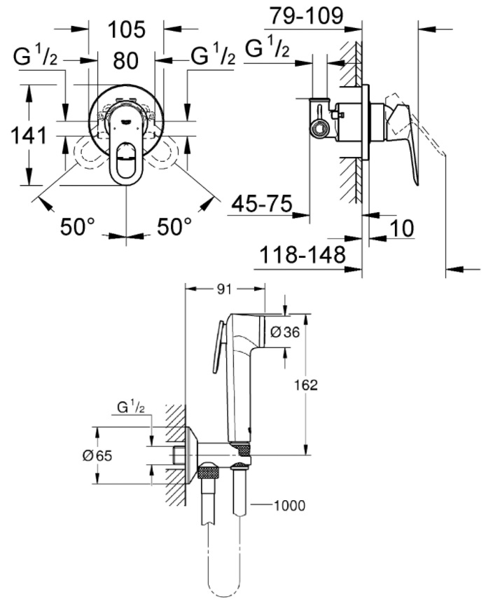 | Комплектация | внешняя и внутренняя части смесителя, гигиенический душ, запорный вентиль, шланг |