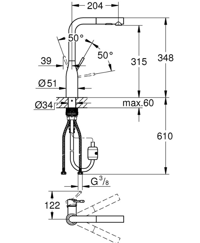 | Тип излива | выдвигающийся излив |