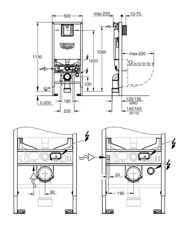 Grohe 38661000 cistern conc.GD2 1,13 m pneum. 3-6 l