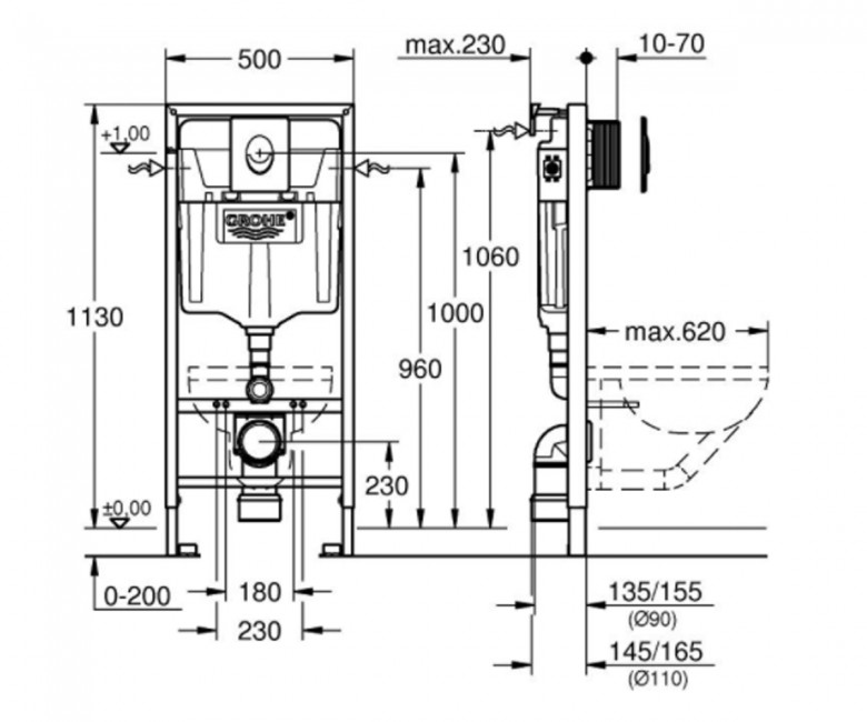 Инсталляция для унитаза – это прочная, самонесущаяся рама которая выполнена из прочной стали с порошковым напылением. Быстрая регулировка по высоте позволит быстро подобрать нужную высоту для монтажа унитаза. Благодаря инсталляции GROHE RAPID SL – все вентили, трубы и другие коммуникации будут спрятаны в стене или перегородке, в которую встраивается инсталляция.
