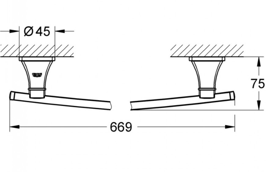 Полотенцедержатель в виде перекладины коллекции GROHE Grandera — это изумительное сочетание оригинального дизайнерского решения, эффектного хромированного покрытия GROHE Long-Life Shine, безупречного качества исполнения и надежной системы быстрого монтажа.