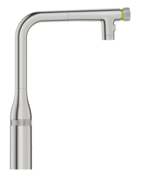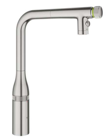 Поворачивая кнопку, вы можете регулировать объем воды: от экономного экорежима до более мощной струи. Чтобы отрегулировать температуру, просто поверните смесительный клапан на корпусе крана, который имеет прочную трубчатую конструкцию. Высокое Г-образное излияние оставляет достаточно места для наполнения больших кастрюль или сковородок, а для большей гибкости он возвращается на 140 градусов. Выдвижная двойная распылительная насадка имеет выбор между мягкой и сфокусированной ламинарной струей, которая идеально подходит для ополаскивания раковины или подготовки овощей без разбрызгивания, и более мощным и широким распылителем. После завершения работы система GROHE Magnetic Docking обеспечит плавный возврат воронки на место. Этот смеситель имеет стойкое к царапинам долговечное покрытие GROHE Long-Life, а изолированные внутренние пути подачи воды гарантируют, что ваша питьевая вода не содержит свинца и никеля внутри крана. А благодаря металлическому креплению и гибким соединительным шлангам монтаж на одно отверстие не доставит вам хлопот. GROHE Accent SmartControl – смеситель, придающий мгновенный стиль и практическую технологию, на которую можно положиться!