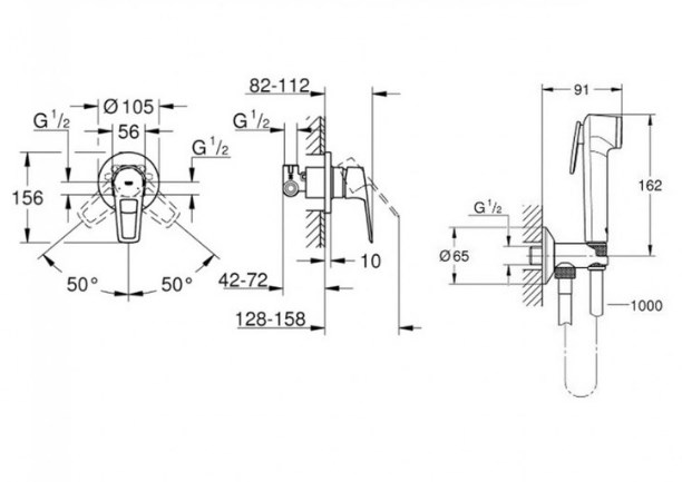 | Комплектация | смеситель, гигиенический душ, шланг, крепежи |