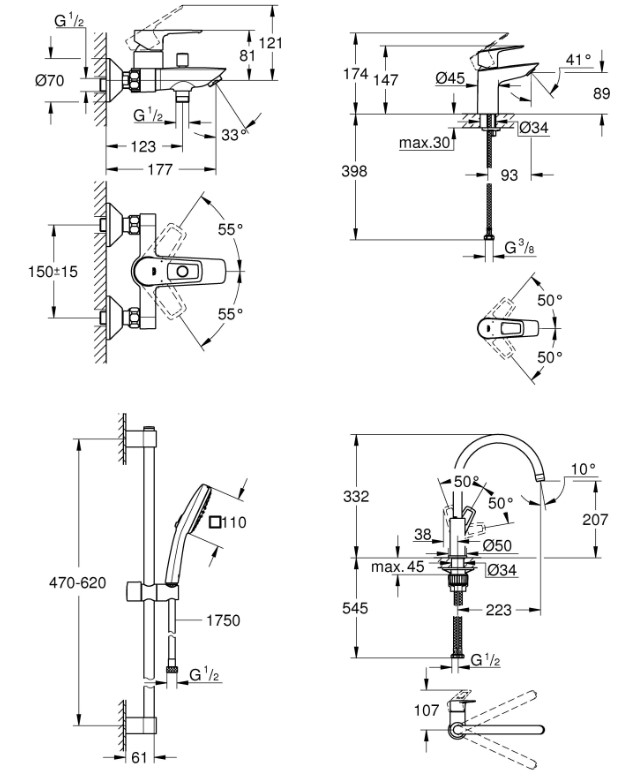 Комплект смесителей BauLoop New4 в 1 для ванной и кухни. GROHE Water Saving – технология непревзойденного потока при экономном использовании воды. GROHE SmartSwitch – легко поворачивайте диск, чтобы наслаждаться желаемым вариантом режима душа. GROHE DreamSpray роскошный поток воды. GROHE Long-Life поверхность хром. GROHE FastFixation (регулируемый верхний кронштейн для имеющихся отверстий), регулируемый держатель (поворотный и скользящий держатель для душа). SpeedClean – технология, предотвращающая образование известкового налета. Inner WaterGuide – внутренняя изоляция для защиты поверхности и предотвращения ожёгов. ShockProof – силиконовое кольцо, предотвращающее возникновение повреждений при падении ручного душа.