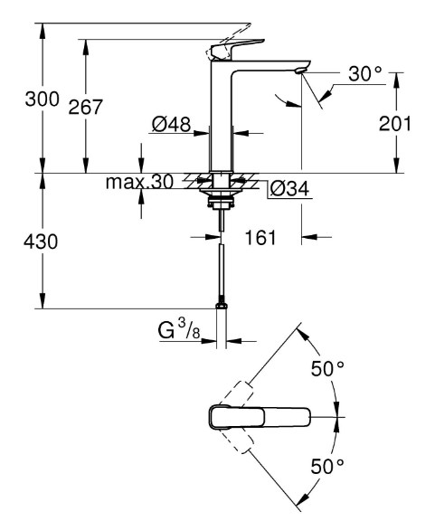 GROHE Long-Life поверхность. GROHE Water Saving – технология непревзойденного потока при экономном использовании воды максимальный расход (при давлении 3 бар) 5 л/мин. GROHE AquaGuidе регулируемый аэратор.