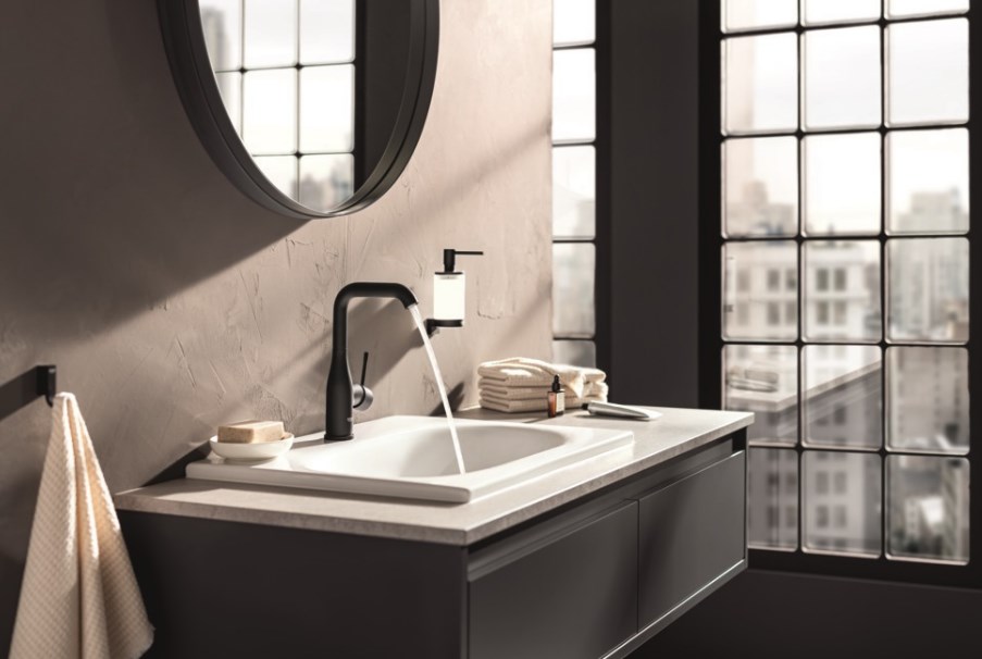 Однорычажный смеситель для раковины GROHE Essence в цвете «фантомный чёрный» отличается невероятно стильным внешним исполнением и безупречной функциональною, что делает его идеальным решением для дополнения интерьера любой современной ванной комнаты. Представленное устройство оснащено рядом ведущих технологий GROHE — GROHE SilkMove, GROHE WaterSaving, GROHE AquaGuide, GROHE Long-Life Shine, GROHE QuickFix Plus, которые демонстрируют абсолютную целеустремленность бренда в желании улучшить пользовательский опыт своих клиентов.