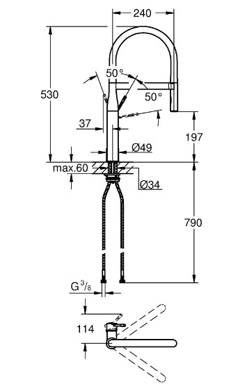 Излив возвращается на 360 градусов для максимальной гибкости, тогда как профессиональная распылительная головка с опусканием вниз имеет два варианта – стандартный распылитель и мощный распылитель – идеально подходит для решения множества кухонных задач. Он также позволяет охватить по ширине двойную мойку (с двумя чашами). Когда вы закончите работу, система GROHE EasyDock M означает, что цельнометаллическая распылительная головка легко убирается, возвращаясь на место с помощью мощного магнита. Это идеальный выбор для современных или промышленных кухонных конфигураций благодаря профессиональному стилю и тщательно продуманным деталям, таким как шланг в 10 шикарных цветах. В этом моноблочном смесителе используется технология SilkMove, обеспечивающая плавный и точный контроль воды и температуры в течение многих лет. Гигиенический силиконовый шланг GROHFlexx и силиконовые форсунки SpeedClean, которые можно легко очистить от известкового налета. Поверхность будет безупречный вид долгие годы, поскольку она имеет прочную обработку GROHE Long-Life Shine с использованием физического осаждения из паровой фазы (PVD) для дополнительной защиты от царапин. Почувствуйте вкус профессионального уровня на собственной кухне с GROHE Essence Professional.