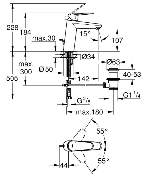 Смеситель для раковины Eurodisc Cosmopolitan средней высоты, с донным клапаном и технологией GROHE WaterSaving, позволяющий снизить водопотребление до 50 процентов. Благодаря износостойкому сияющему хромовому покрытию GROHE Long-Life Shine смеситель практически не нуждается в уходе. Просто протрите его мягкой тканью.