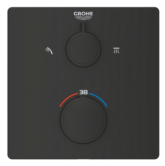 Матово-черный термостатический смеситель для душа GROHE Grohtherm станет идеальным завершающим элементом для вашего душа, разработанным для того, чтобы вы могли легко переключаться между верхним и ручным душем. Легко управляйте потоком с помощью простого действия GROHE AquaDimmer, которое позволяет вам легко направлять воду туда, куда вы хотите, одновременно регулируя ее напор. Четкий квадратный дизайн приглашает вас взаимодействовать с интуитивно понятными элементами управления, а тонкий профиль (настенная пластина 10 мм, общая проекция 43 мм) идеально подходит для минималистичных схем.