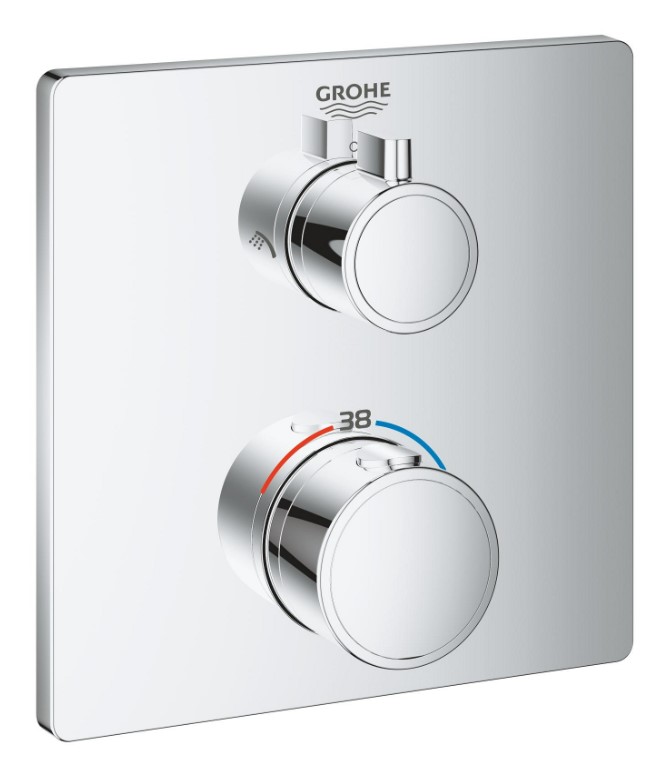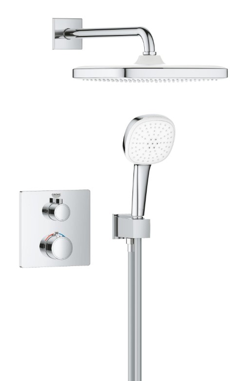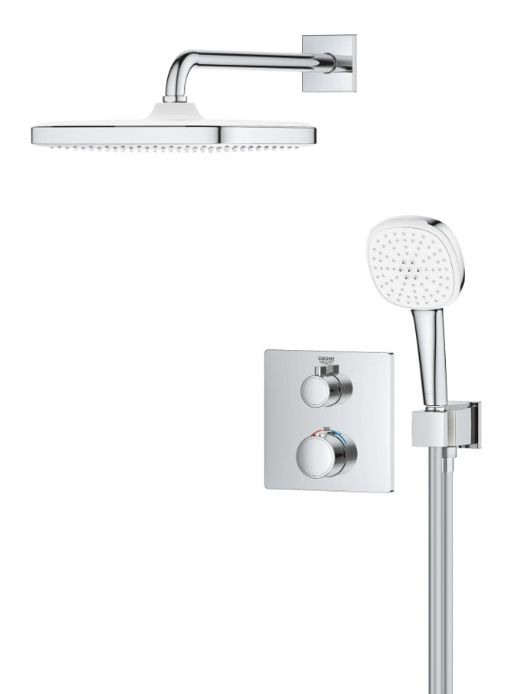 Скрытая душевая система Grohtherm обеспечивает удивительный стиль и производительность! Элегантная отделка Grohtherm имеет стильный современный вид, а немецкая технология обеспечивает точность производительности. Технология GROHE TurboStat обеспечивает постоянную подачу воды идеальной температуры, в то время как технология GROHE Water Saving снижает расход воды до 9,5 л/мин без ущерба для производительности. Она также удобна для всей семьи, поскольку кнопка GROHE SafeStop установлена на 38C, поэтому ожоги остались в прошлом. Дополнительный GROHE SafeStop Plus позволяет вам добавить дополнительное ограничение 43 или 46C для дополнительного уровня безопасности. Легко управляйте потоком с помощью простого действия GROHE AquaDimmer, которое позволяет вам направлять воду туда, куда вы хотите, одновременно регулируя ее напор.