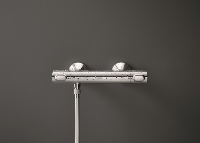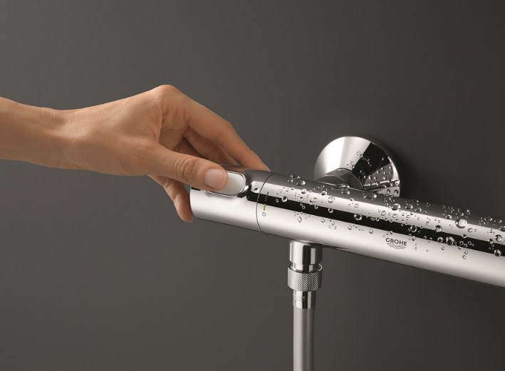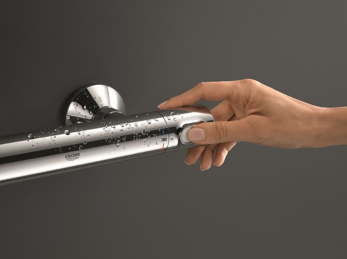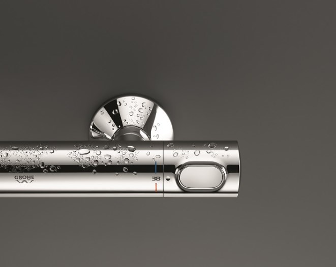 GROHE SafeStop – предварительно установленный ограничитель температуры на 38C. GROHE SafeStop Plus (дополнительная опция) – ограничитель температуры воды до 43C. Термостатический картридж GROHE с восковым термоэлементом. Рукоятка для регулировки объема водного потока с функцией GROHE EcoButton. Фильтры для задержания грязи.