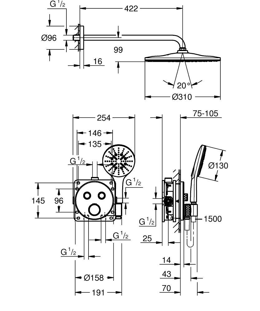 Душевая система внутреннего монтажа GROHE GROHTHERM SMARTCONTROL - универсальная производительность, минималистичный стиль и безопасность пользователя. Современный стиль и удобство для всей семьи! В душевой системе GROHE Grohtherm SmartControl собрано все, что нужно для идеального принятия душа. Элегантный и сверхтонкий термостат Grohtherm SmartControl со встроенным держателем ручного душа в сочетании с универсальной внутренней частью Rapido SmartBox для скрытой установки имеет современный вид, а немецкие технологии обеспечивают точную работу. Технология GROHE TurboStat обеспечивает постоянную подачу воды идеальной температуры, а технология GROHE Water Saving снижает расход воды и энергии без ущерба для производительности.