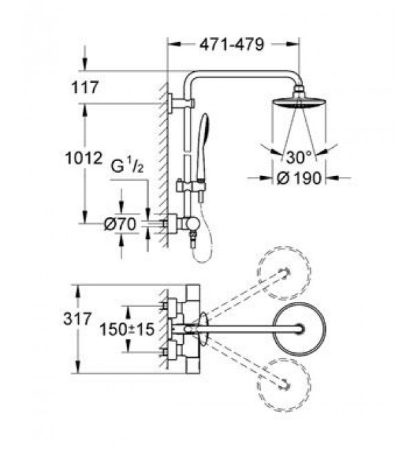 | Особенности | регулируемый угол верхнего душа, GROHE TwistFree предотвращает перекручивание шланга, GROHE SpeedClean предотвращает образование известковых отложений на соплах |
