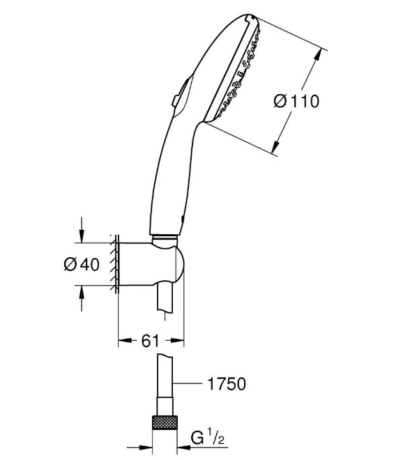 | Комплектация | ручной душ, душевой шланг, настенный держатель |