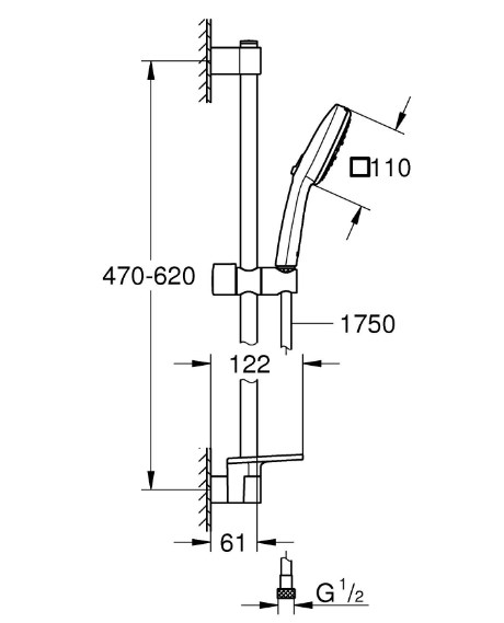 | Комплектация | ручной душ, душевой шланг, душевая штанга, скользящий держатель, полка, крепежи |