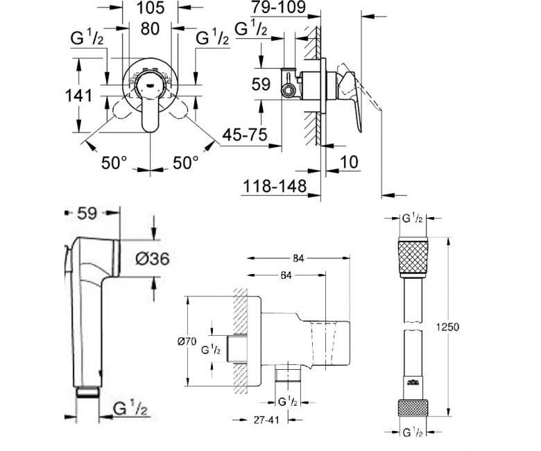 | Комплектация | гигиенический душ, держатель для душа, душевая шланга, смеситель |
