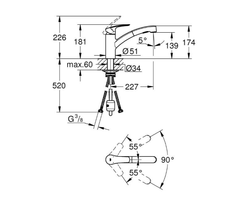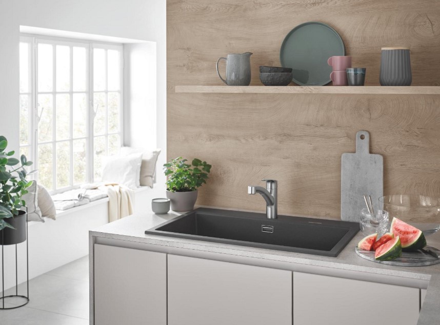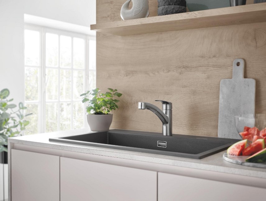 Смеситель оснащен автоматическим переключателем режимов струи, позволяющим быстро переходить между ламинарной и струйной подачей воды для различных задач мытья и сохранения ресурсов. Решения GROHE SpeedClean помогают противостоять образованию известковых отложений на насадке, а система быстрого монтажа значительно упрощает установку без дополнительных инструментов. Такое сочетание эргономики, качества и технологий делает эту модель надежным и комфортным выбором для любой кухни.