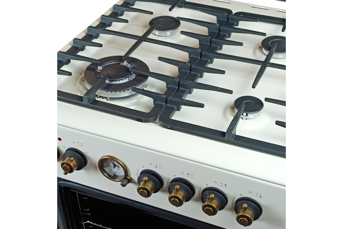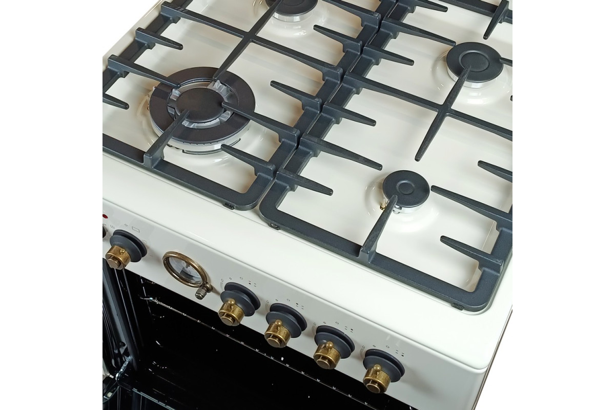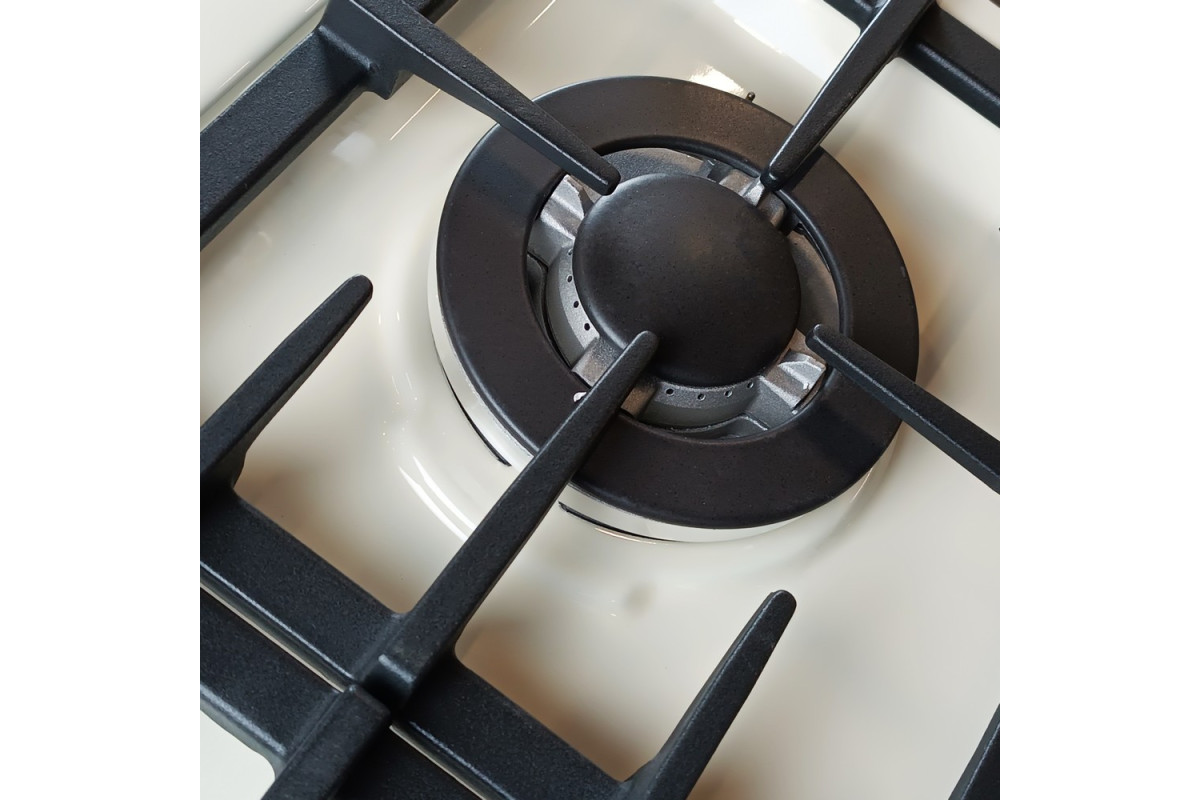 На варочной панели предусмотрены 4 инновационные конфорки разных размеров – для комфортного и равномерного нагрева посуды разных объемов и диаметров днища. Мощность газового потока и пламени регулируют поворотные ручки на передней панели плиты.