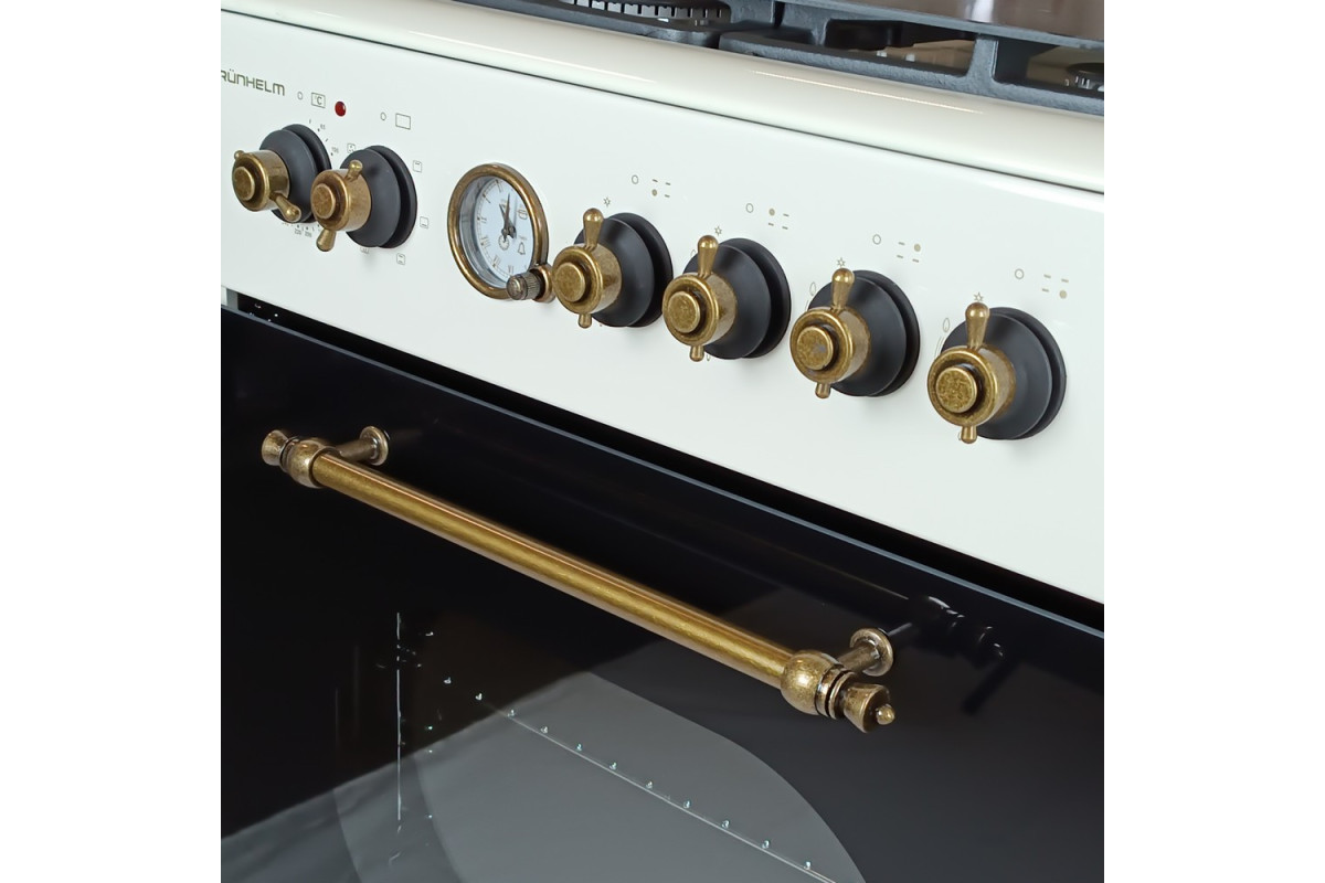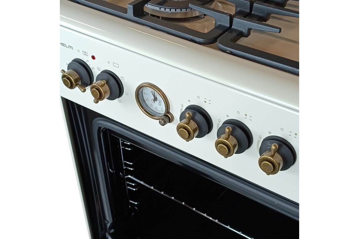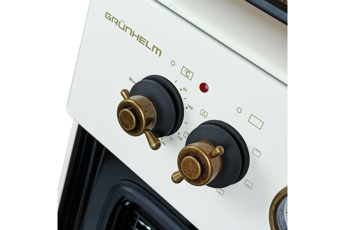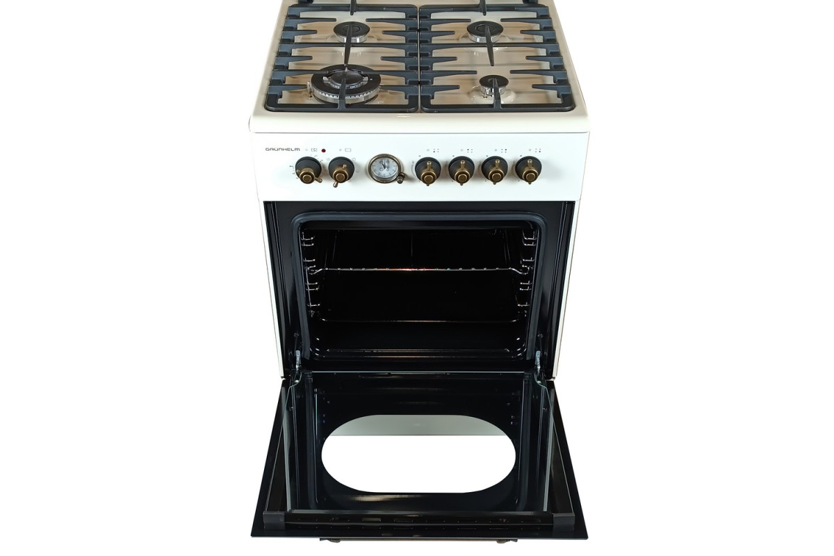 На варочной панели предусмотрены 4 инновационные конфорки разных размеров – для комфортного и равномерного нагрева посуды разных объемов и диаметров днища. Мощность газового потока и пламени регулируют поворотные ручки на передней панели плиты.