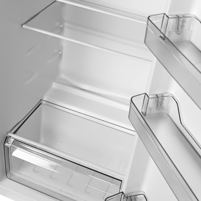 Модель оснащена механическим управлением и статической охлаждающей системой, что обеспечивает стабильную температуру в обеих камерах. Внутреннее пространство холодильника организовано с учетом удобства пользователя: полки из закаленного стекла, дверные корзины и контейнер для овощей позволяют эффективно размещать продукты. Благодаря LED-подсветке в холодильной камере содержимое всегда хорошо видно, что облегчает поиск необходимых продуктов. Холодильник также отличается низким уровнем шума, что обеспечивает комфортное использование в любом помещении.
