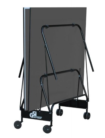 Теннисный стол для закрытых помещений. В качестве материала для игровой поверхности используется специально обработанная древесностружечная плита (ДСП) толщиной 16 мм. На ДСП нанесено специальное антибликовое пластиковое покрытие. Игровая поверхность оснащена металлической рамой (прямоугольный профиль 30х20 мм). Теннисный стол базируется на удобной тележке, изготовленной из металлического трубчатого профиля диаметром 25 мм с полиэфирным покрытием. Конструкция стола позволяет тренироваться в одиночку. Стол легко перемещается на 4-х сдвоенных колесах диаметром 107 мм, 2 колеса маневренные. Стол комплектуется сеткой.