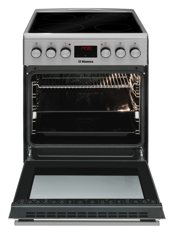 Готовьте с удовольствием с электрической плитой Hansa FCCX58208. Варочная поверхность с двойным полем и полем для гусятницы позволяет использовать большую посуду. С помощью цифрового таймера с системой отложенного старта и автоматического отключения вы сможете выбрать время готовки в духовке с 8 программами нагрева, а конвекция обеспечит оптимальный результат. Выдвижные телескопические направляющие для противней ProCook позволят готовить с комфортом.