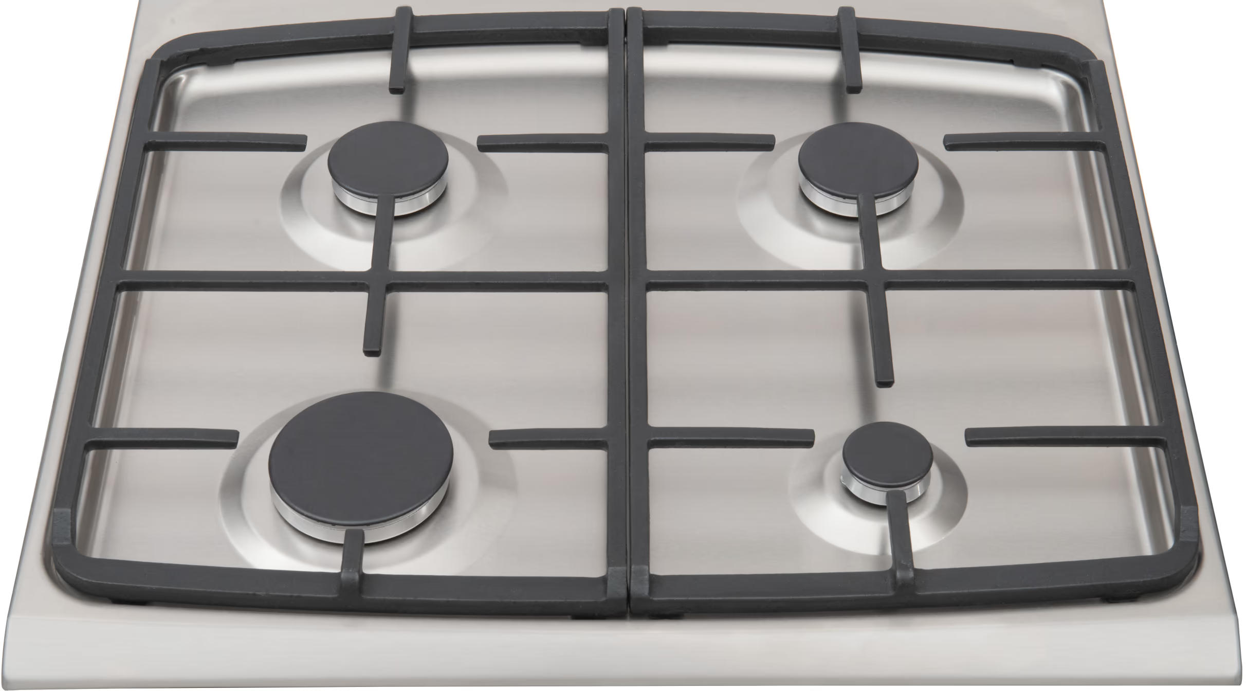 Модель совмещает классическую газовую варочную поверхность с духовым шкафом объемом 70 л. Нержавеющий корпус с панелью управления спереди, четыре газовых конфорки с литыми чугунными решетками обеспечивают эффективный и равномерный нагрев, а электроподжиг в ручках и система газ-контроля гарантируют безопасное использование. Духовка оснащена большой стеклянной дверцей для контроля процесса и предусмотрена для обычного монтажа – отличное решение для средней семьи, которая ищет надежный агрегат.