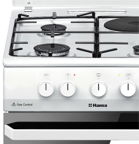 Комбинированная плита Hansa FCMW54000H станет не только идеальным помощником в приготовлении блюд, но и прекрасным дополнением кухонного интерьера. Варочная поверхность выполнена из эмалированной стали и оснащена функцией газ-контроль, которая обеспечит безопасность во время ее использования. Очистить духовой шкаф можно еще проще, с помощью системы очистки паром Aqualytic. Рецепты на двери помогут выбрать нужную температуру и режим нагрева.
