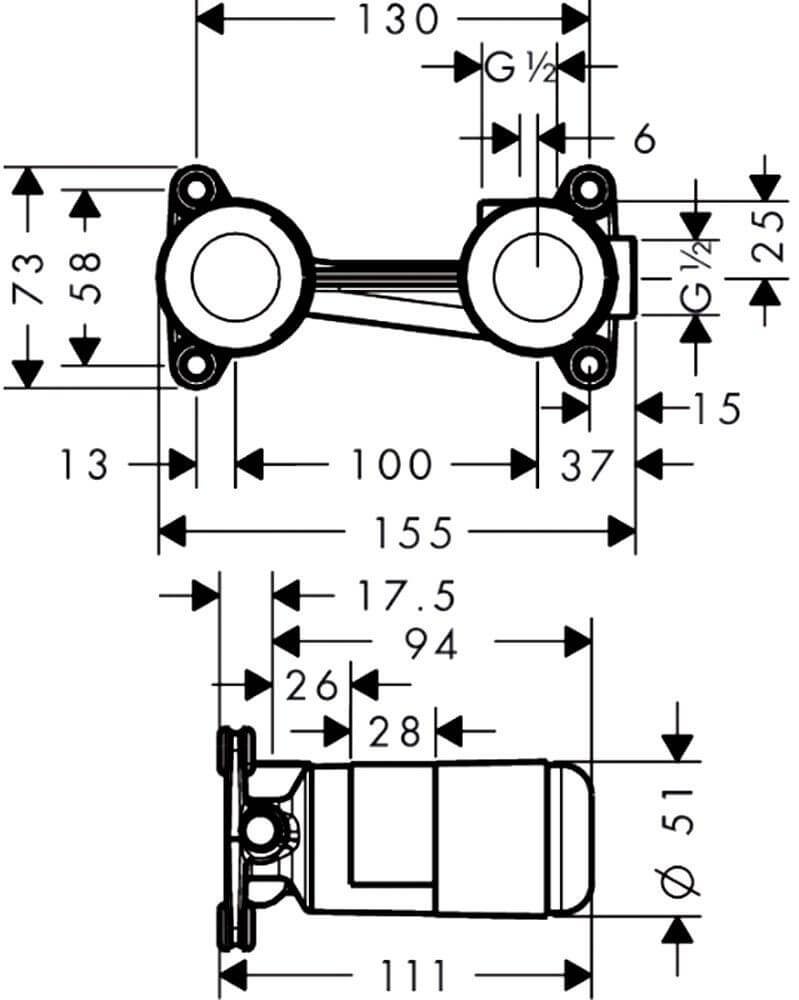 Eниверсальное размещение системы смешивания по выбору слева или справа от излива/