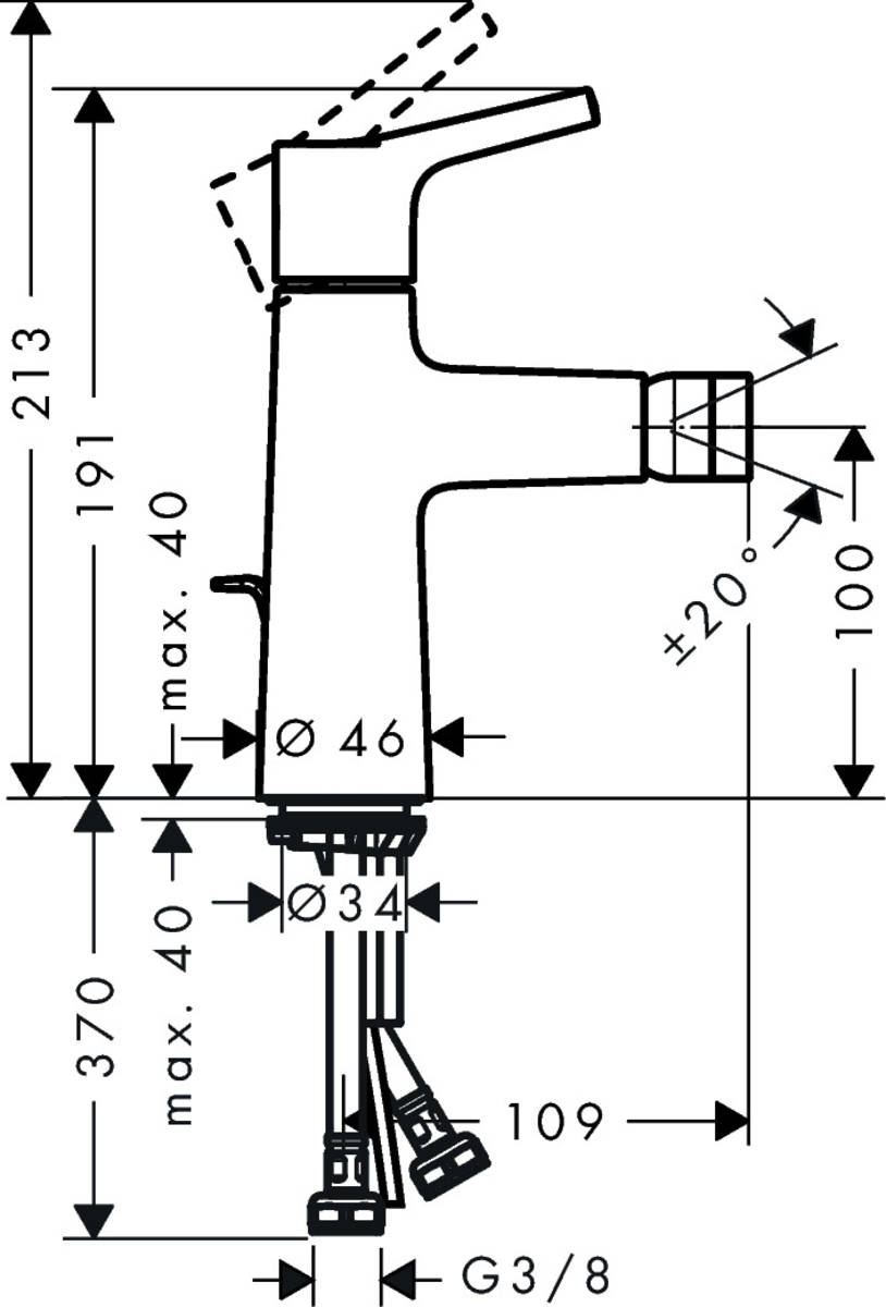 | Комплектация | однорычажный смеситель для биде, слив/перелив |