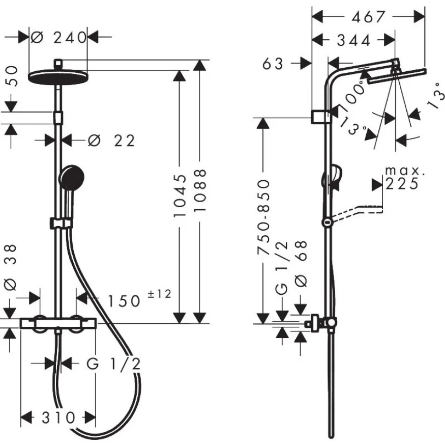 | Особенности | 2 режима ручного душа, регулировка угла наклона верхнего душа, регулируемая опора на стену, регулируемый по высоте держатель ручного душа, вращающийся на трубе ползунок, QuickClean+ |