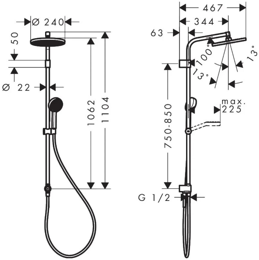 | Особенности | 2 режима душа, регулировка угла наклона верхнего душа, регулируемая опора на стену, регулируемый по высоте ползунок с кнопочной блокировкой, QuickClean+ |