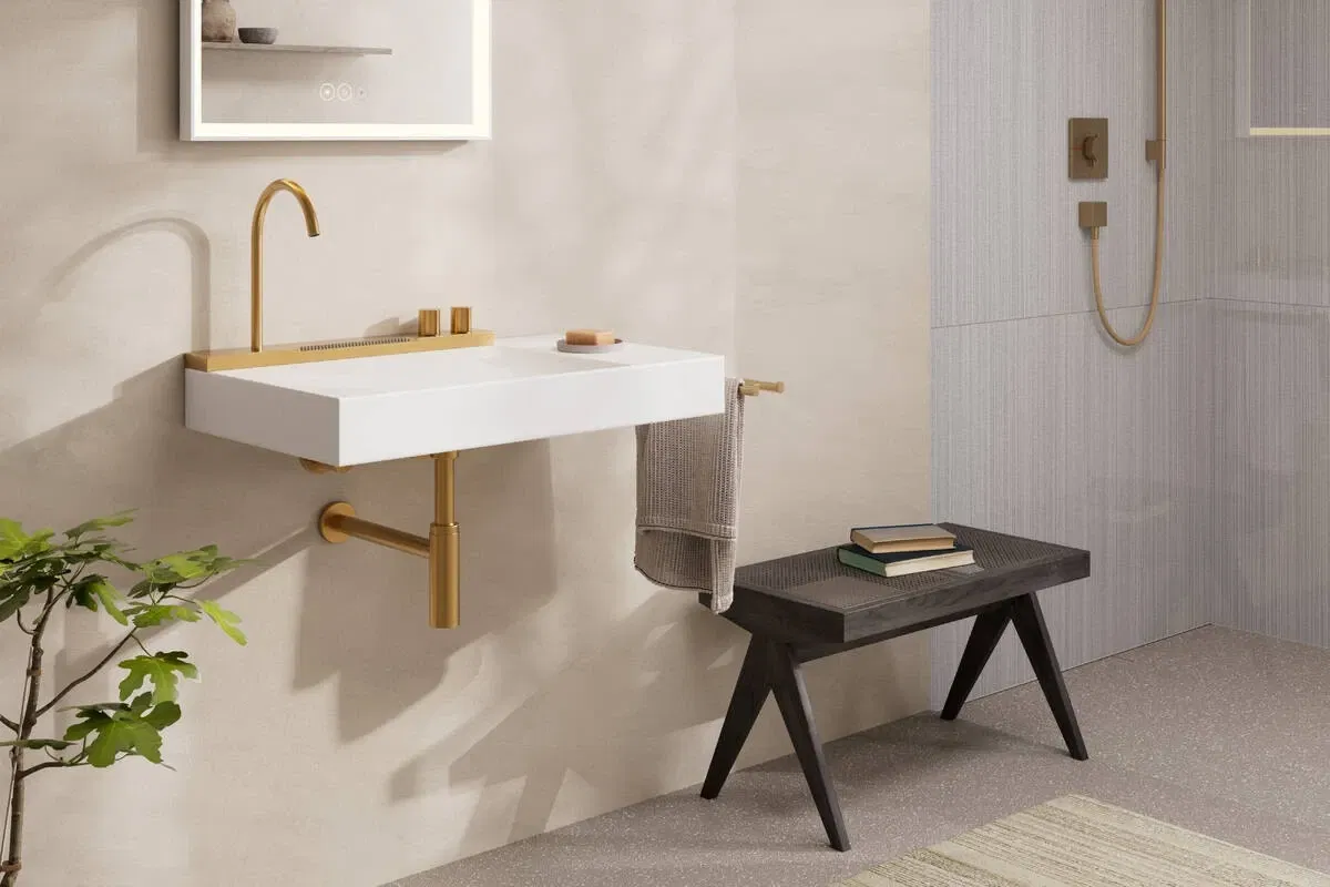 В комплект входит умывальник и смеситель AquaUnit, состоящий из излива, декоративной накладки и встроенного распылителя. Система поддерживает два типа струи – ламинарную и Rain, что позволяет выбрать между классическим потоком воды или мягкой душевой струей для комфортного умывания. Благодаря технологии QuickClean+ силиконовые форсунки легко очищаются от известкового налета, что упрощает уход за изделием. Чаша изготовлена из материала SolidSurface, отличающегося высокой прочностью, гладкой поверхностью и долговечностью. Умывальник не имеет перелива и отверстия под смеситель, что подчеркивает минималистичный дизайн. Конструкция подразумевает накладной или настенный монтаж, поэтому модель можно устанавливать как на мебельную тумбу, так и в подвесном варианте.