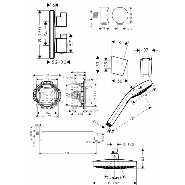 | Комплектация | верхний душ, ручной душ, держатель, термостат, шланг |