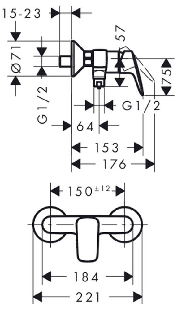 Смеситель Hansgrohe Logis (71600000). Вид соединения: S-образные эксцентрики. Межосевое подключение: 150 мм +/- 12мм.
