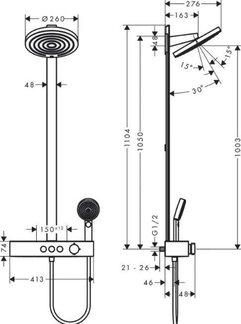 | Особенности | 2 режима верхнего душа, 3 режима ручного душа, верхний душ с углом наклона 13-39 градусов, термостат CoolContact: предотвращает нагрев корпуса, что делает прием душа еще более безопасным, защищен от обратного потока |
