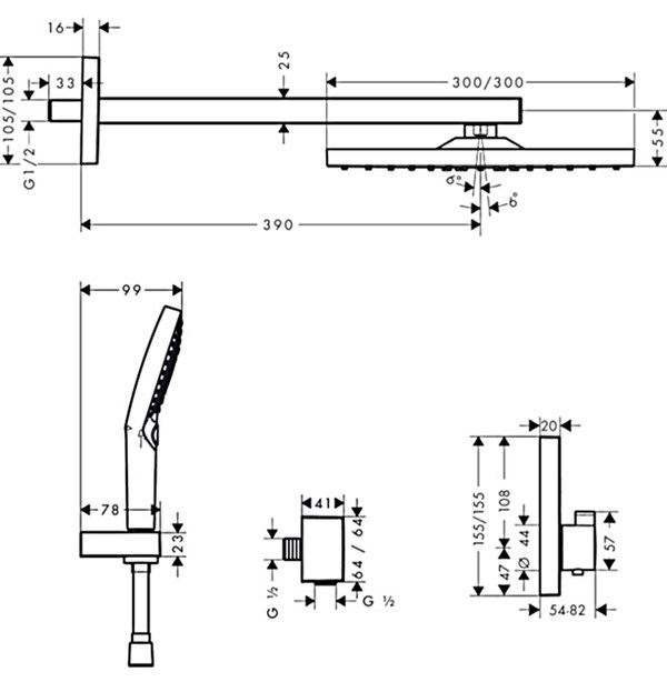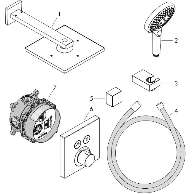 Комплектация | верхний душ, ручной душ, термостат для душа, держатель для душа, держатель для душа, настенное подключение, душевой шланг, базовый комплект |