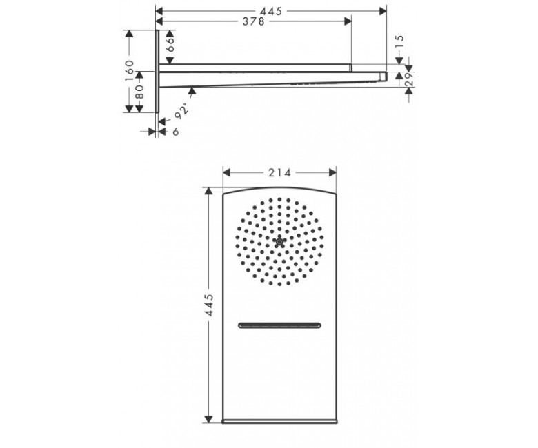 Душевой диск изготовлен из металла и оснащен технологией QuickClean, позволяющей легко удалять известковый налет простым протиранием силиконовых форсунок. Технология AirPower обогащает струю воздухом, делая капли более мягкими и экономными в использовании воды. Благодаря технологии XXL Performance обширный душевой модуль обеспечивает максимально комфортное покрытие водяным потоком.