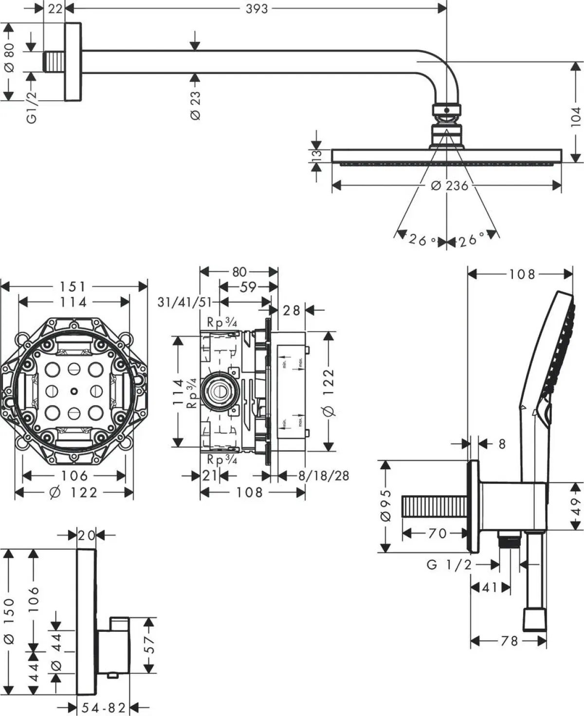 Встроенный термостат hansgrohe надежно поддерживает выбранную температуру, защищая от перепадов и обеспечивая полную безопасность для всей семьи. Душевая система Hansgrohe Raindance S 240 выполнена в стильном хромированном покрытии, которое подчеркивает современный интерьер ванной комнаты, легко очищается и сохраняет блеск долгие годы. Соответствует высоким стандартам качества и долговечности, а инновационная система QuickClean позволяет легко удалять известковый налет одним движением.