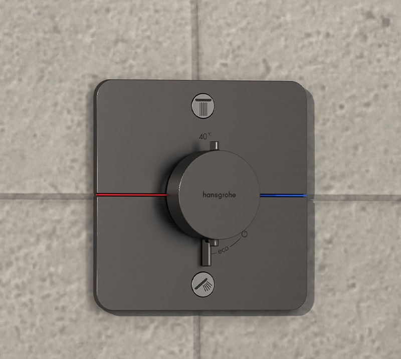 Hansgrohe ShowerSelect Comfort Q 15583340 – премиальный термостат скрытого монтажа для душа из коллекции ShowerSelect Comfort Q, созданный для современных дизайнерских ванных комнат. Лаконичная квадратная панель в покрытии черный матовый хром выглядит элегантно и стильно, а скрытый монтаж позволяет оставить на стене только аккуратный блок управления, обеспечивая минималистичный вид душевой зоны.