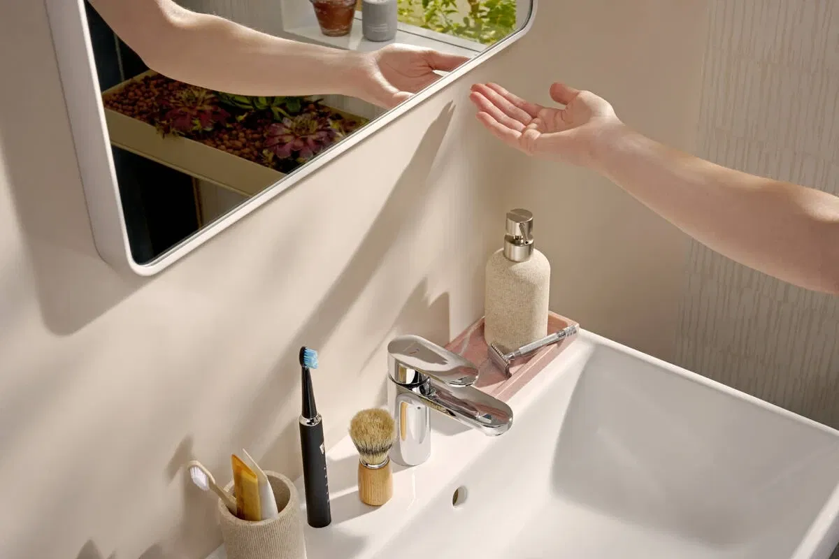 Hansgrohe Xarita Lite Q 100×70 см (54977700) — стильное прямоугольное решение с мягкими скругленными углами, сочетающее функциональность и эстетику. Его вертикальное LED-освещение по бокам равномерно освещает лицо без теней, создавая комфортную атмосферу в ванной. Модель оснащена инфракрасным сенсором бесконтактного управления – жест руки под нижней рамкой активирует свет или подогрев. Также доступна функция затемнения интенсивности света (диммер) и система подогрева AntiFog, предотвращающая запотевание зеркала после горячего душа. Зеркало имеет класс защиты IP44, что делает его пригодным для влажных помещений. LED-свет имеет расчетный ресурс более 36 000 часов.