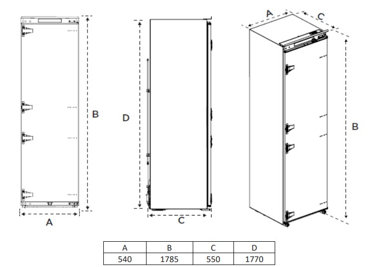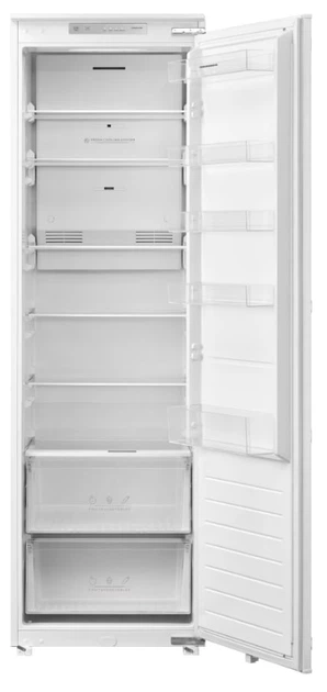 Холодильник работает тихо, а электромеханическое управление делает настройку простой и понятной. Модель встраиваемая с LED-индикацией и LED-подсветкой, что облегчает контроль за продуктами даже в темное время суток. Возможно перевешивание дверей под определенное расположение кухонного пространства.